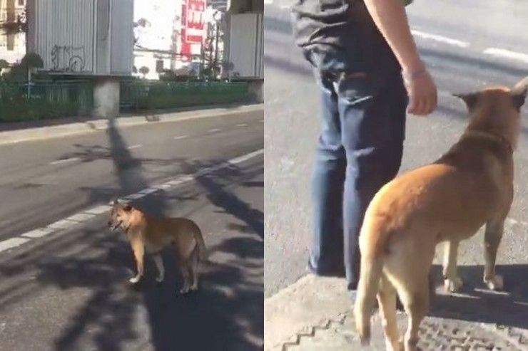 แสนรู้!คลิปหมาไม่กล้าข้ามถนนแต่รอให้คนพาข้าม
