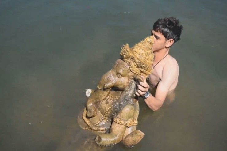 ชาวบ้านแตกตื่นนึกว่าศพจมน้ำ ที่แท้เป็นรูปปั้นพระพิฆเนศ