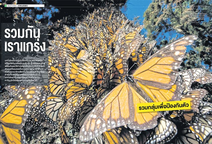 นกกิ้งโครงรวมฝูงกันได้เพราะตาของพวกมันเปรียบได้กับกล้องความเร็วสูง ตั๊กแตนผสมพันธุ์ พร้อมกันและให้กำเนิดลูกตั๊กแตนนับพันๆ ล้านตัว ส่วนมดที่รวมพลเป็นกองทัพก็สามารถฆ่างูได้ ชีวิตในอาณาจักรสัตว์นั้น หากแต่ละตัวอยู่เพียงลำพังก็จะอ่อนแอ แต่เมื่อรวมกลุ่มกันไม่ว่านกกิ้งโครง ตั๊กแตน หรือมด ต่างก็สามารถหากิน ปกป้องตัวเอง และขยายพันธุ์ได้