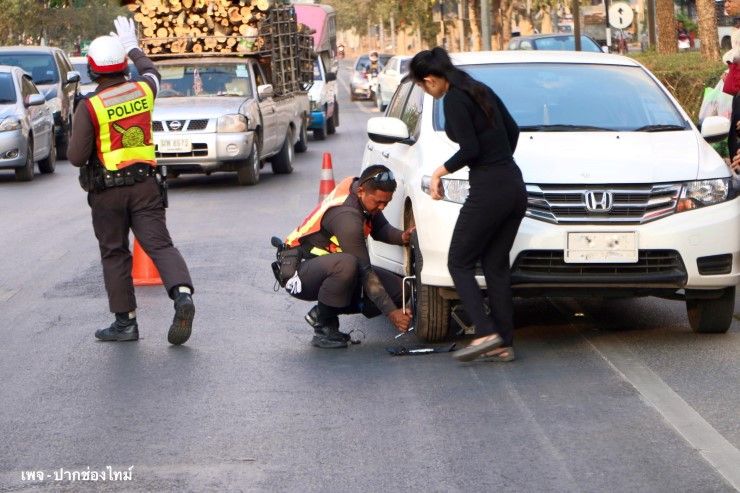 น่าชื่นชม! คุณตำรวจช่วยเปลี่ยนยางรถให้ประชาชน