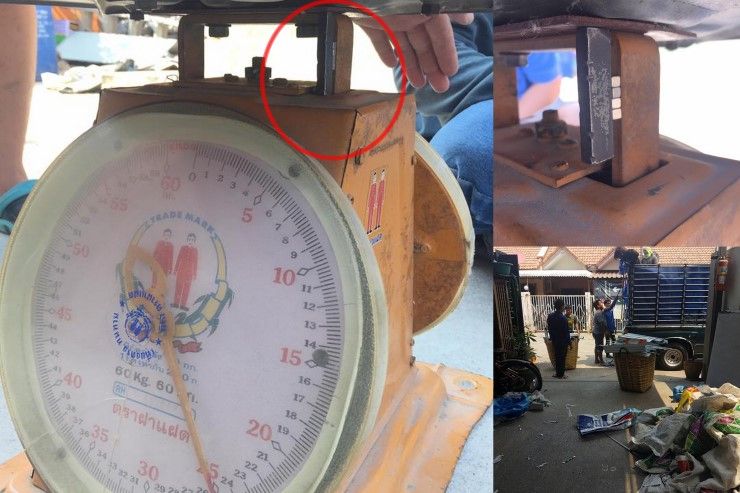 เผยพฤติกรรมพ่อค้ารับซื้อเศษเหล็กโกงตาชั่งด้วยวิธีติดแท่งเหล็กไว้ด้านล่างเครื่องชั่ง