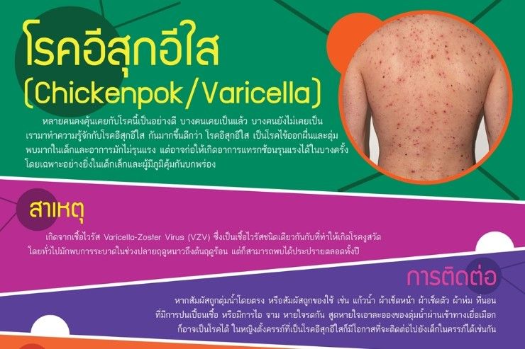 ด้าน นพ.เจษฎา โชคดำรงสุข อธิบดีกรมควบคุมโรค กล่าวว่า โรคอีสุกอีใสเกิดจากเชื้อไวรัส ที่มีชื่อว่า วาริเซลลา (Varicella virus) ซึ่งเป็นเชื้อชนิดเดียวกับที่ทำให้เป็นโรคงูสวัด โดยเชื้อจะกระจายตัวอยู่ในอากาศ ติดต่อทางการหายใจเอาละอองเสมหะ น้ำมูก น้ำลายของผู้ป่วย การใช้สิ่งของร่วมกับผู้ป่วย การคลุกคลีใกล้ชิด สัมผัสน้ำเหลืองจากตุ่มพองใสที่ผิวหนังของผู้ป่วย ซึ่งหลังรับเชื้อประมาณ 10 - 20 วัน จะเริ่มเกิดอาการ มีไข้ต่ำๆ ต่อมาจะมีผื่นขึ้นที่หนังศีรษะ หน้า ตามตัว โดยเริ่มเป็นผื่นแดง ตุ่มนูน แล้วเปลี่ยนเป็นตุ่มพองใสในวันที่ 2-3 วัน หลังจากเริ่มมีไข้ หลังจากนั้นตุ่มจะเป็นหนอง เริ่มแห้งตกสะเก็ด รวมเวลา 5-20 วัน ผื่นอาจขึ้นในคอ ตา และในปาก เมื่อเป็นแล้วจะมีภูมิคุ้มกันตลอดชีวิต แต่เชื้ออาจหลบอยู่ในปมประสาทและมีโอกาสเป็นโรคงูสวัดได้ภายหลัง