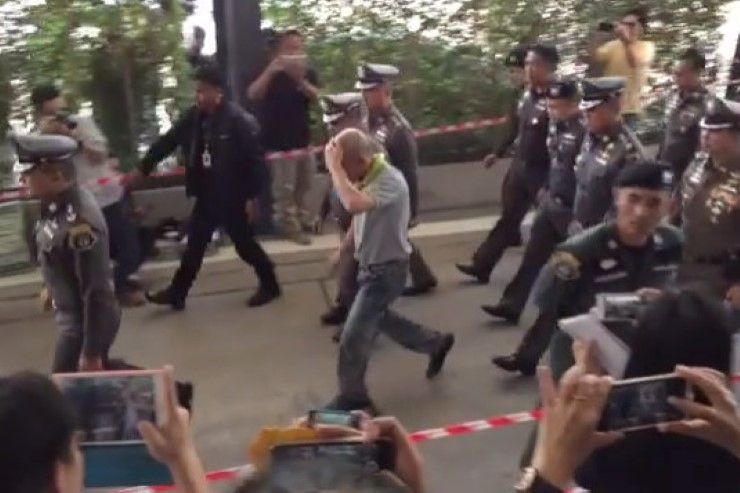เจ้าหน้าที่คุมตัว "พล.ต.อ.จุมพล มั่นหมาย" เข้าสอบปากคำที่ กองปราบปราม หลังตกเป็นผู้ต้องหาคดีรุกป่าทับลาน