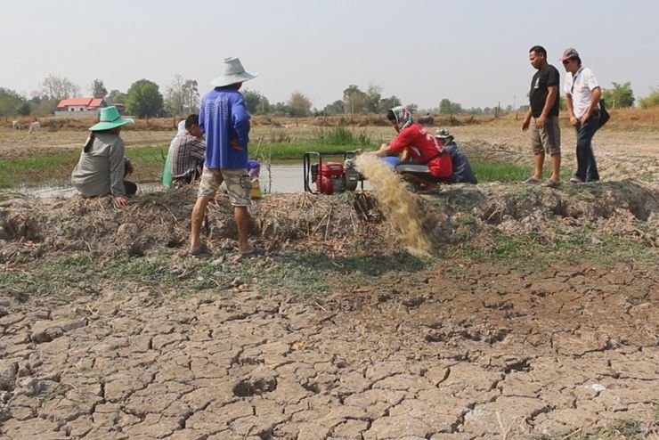 ขอนแก่น-แหล่งน้ำสาธารณะเริ่มแห้งขอด ชาวบ้านเร่งสูบน้ำออกจากบ่อเพราะปลาทนกับสภาพน้ำที่ร้อนจัดไม่ไหว