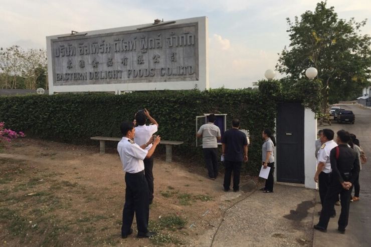 นายกรณ์ภัฐวีญ์ ม่วงน้อย อุตสาหกรรม จังหวัดระยอง สั่งการให้นายณชรพงศ์ บุญทา วิศวกรปฏิบัติการ สำนักงานอุตสาหกรรมจังหวัดระยอง ประสาน น.ท. ธวัชชัย กันทัด หัวหน้าชุดเฉพาะกิจตรวจสถานประกอบการแปรรูปสัตว์น้ำ เขต 1ชุดที่ 3 นำกำลังเจ้าหน้าที่ทหาร นำคำสั่งไปปิดโรงงาน บริษัท อีสเทิร์น ดีไลท์ฟูดส์ จำกัด ตั้งอยู่เลขที่ 119 ถนนสายบ้านบึง – แกลง หมู่ 4 ตำบลวังจันทร์ อำเภอวังจันทร์ จังหวัดระยอง ประกอบกิจการทำปลากระป๋องและเงาะกระป๋อง กระทำผิดตามพ.ร.บ.โรงงานอุตสาหกรรม พ.ศ. 2535 และกฏหมายอื่น มีกำหนด 30 วัน นับตั้งแต่วันที่ 24มี.ค.2560 แต่ขณะนำคำสั่งปิดโรงงานดังกล่าว เจ้าของโรงงานไม่อยู่ จึงแจ้งให้ผู้จัดการโรงงาน ผู้จัดการฝ่ายผลิตและผู้จัดการฝ่ายบัญชีและบุคคล เป็นตัวแทนรับทราบคำสั่งแทน