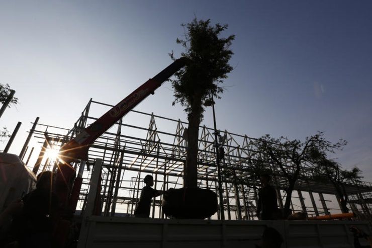 จนท.ย้ายต้นมะขามสนามหลวงเตรียมพื้นที่สร้างพระเมรุ