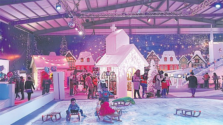 อีกหนึ่งงานสร้างสรรค์จากฝีมือมนุษย์ที่ดูจะถูกใจเด็กๆ เป็นพิเศษ ก็คือ Snow Park หรือเมืองหิมะจำลอง อยู่ไม่ห่างนักจาก Starry Paradise ที่นี่จะเปิดโอกาสให้นักท่องเที่ยวได้เข้ามาสัมผัสกับความหนาวเย็น ด้วยอุณหภูมิที่ต่ำกว่าจุดเยือกแข็งถึงลบ 10 องศา และยังสร้างบรรยากาศให้มีละอองหิมะโปรยปรายลงมา เสมือนว่าอยู่ท่ามกลางหิมะตก ไม่เพียงแค่ได้สัมผัสความหนาวเย็นเท่านั้น สถานที่แห่งนี้ยังจัดแสดงตุ๊กตาหิมะจำนวนมากให้เด็กๆ ได้เติมแต่งจินตนาการ และเป็นมุมสวยๆ ให้ได้เก็บภาพความประทับใจ พร้อมกิจกรรมให้ได้เล่นสนุกกับ Snow Board สร้างประสบการณ์ที่หลากหลายให้นักท่องเที่ยวเสมือนอยู่ในเมืองหิมะของจริง