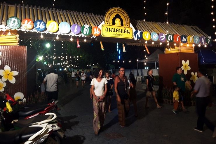 มาวันนี้ จ.เพชรบุรี นำโดยสำนักงานพัฒนาชุมชนจังหวัดเพชรบุรี ได้จัดให้มีการเปิด “ถนนคนเดินเพชรบุรี” ขึ้นมา ด้วยความหวังที่จะกระตุ้นเศรษฐกิจชุมชน และเป็นแหล่งท่องเที่ยวในเชิงวิถีชีวิตของชุมชน ที่มาพร้อมกับการ ชมชิมช็อป อันเป็นแหล่งรวมของอาหารพื้นบ้านเมืองเพชร อร่อยๆ ที่หารับประทานที่ไหนไม่ได้ง่ายนัก มาไว้บนถนนคนเดิน ชนิดที่เรียกได้ว่า “เดินชิมช็อป นั่งเสื่อชมวิว กินอาหารอร่อย บนวิถีชีวิตชุมชนตามแบบฉบับของคนเมืองเพชร” ในทุกวันเสาร์ตั้งแต่สายๆ ยันค่ำ นับเป็นถนนคนเดินสายแรกและครั้งแรกของเมืองเพชรบุรี