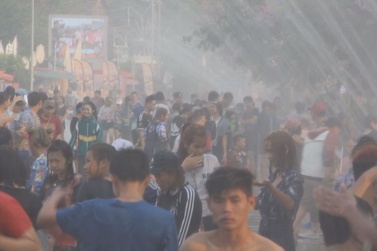 พะเยา-ประชาชนแห่เล่นสงกรานต์คึกพะเยาเปิด“อุโมงค์น้ำ”ริมกว๊านพะเยา200เมตร