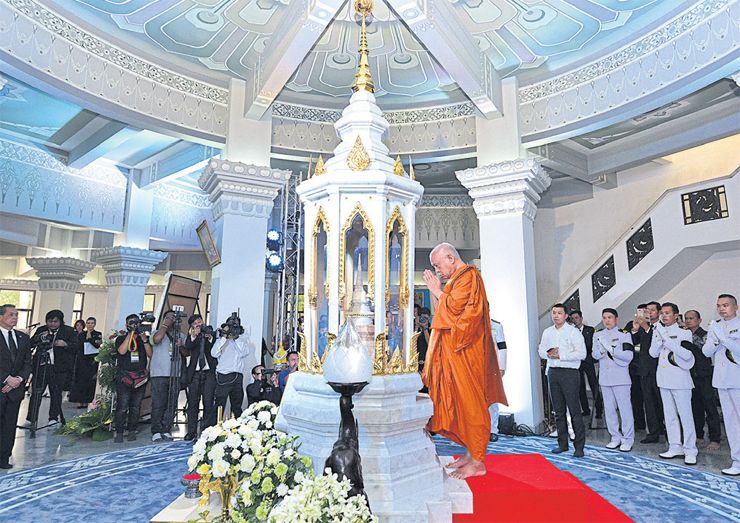 พระอัฐิสมเด็จพระญาณสังวร สมเด็จพระสังฆราช สกลมหาสังฆปริณายก ได้รับการอัญเชิญขึ้นประดิษฐานบนบุษบกหินอ่อน