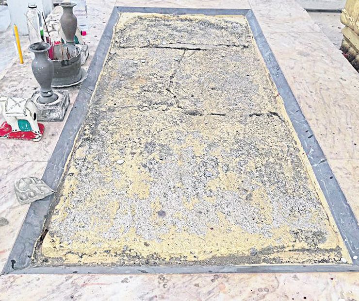 ดูเผินๆ ไม่เป็นอะไรมากนัก แต่ถ้าเพ่งดีๆ จะเห็นเป็นรอยนิ้วกับร่องประทับพระบาทพอสมควร แต่สึกหรอไม่น้อย