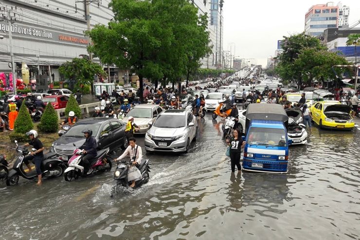 ฝนถล่มกรุงน้ำท่วมถนนระบายไม่ทัน-จราจรอัมพาต