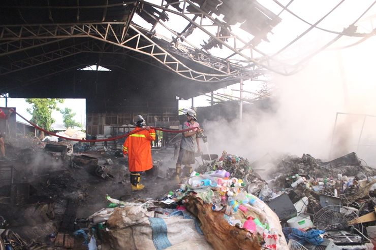 นายประสิทธิ์ ทนทาน อายุ 58 ปี เจ้าของร้านเล่าว่า ขณะที่ฝนกำลังตกตนอยู่ในบ้านได้ยินเสียงฟ้าผ่า และได้กลิ่นเหม็นไหม้เกือบชั่วโมงแต่ก็ไม่ได้สนใจออกมาดู เพราะบริเวณนี้เผาขยะกันบ่อย ส่วนโกดังในบริเวณที่ไหม้เป็นที่สำหรับโม่พลาสติก และเก็บพลาสติกไว้เพื่อคัดแยก ก่อนนำส่งโรงงานใหญ่ต่อไป เนื้อที่โรงงานทั้งหมดประมาณ 2 งาน คาดว่ามูลค่าความเสียหายน่าจะประมาณกว่าล้านบาท
