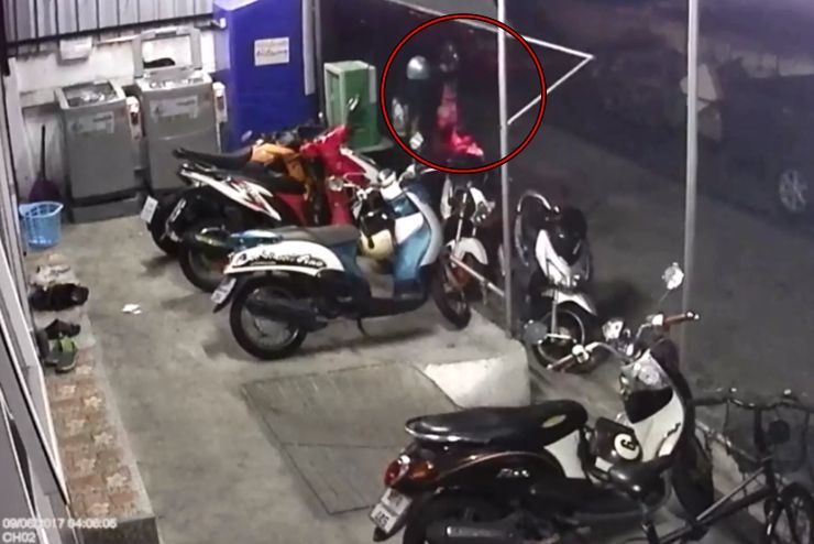 เบื้องต้นจากการตรวจสอบกล้องวงจรปิด พบชาย2คนสวมหมวกกันน็อค สวมเสื้อสีดำ ขี่รถจักรยานยนต์ยี่ห้อ HONDA รุ่น PCX ไม่ทราบแผ่นป้ายทะเบียน มาจอดบริเวณจุดจอดรถจักรยานยนต์ ก่อน1ในผู้ก่อเหตุจะลงมาทำทีลับล่อบริเวณรถจักรยานยนต์ของผู้เสียหาย โดยมีคนขับรถจักรยานยนต์คอยดูต้นทาง จากนั้น1ในผู้ก่อเหตุจะขับขี่รถจักรยานยนต์ของผู้เสียหายไป