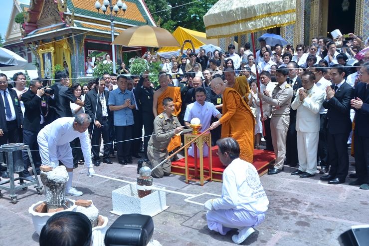 จากนั้น มีพิธีพุทธาภิเษกพระพุทธรูปประจำประชนมวาร และ พระกริ่ง-พระชัยวัฒน์ "อริยวงศ์ โดยพระสงฆ์สมณศักดิ์เจริญคาถา อย่างไรก็ตาม ในช่วงเช้า ได้มีพิธีบวงสรวง ก่อนประกอบพิธีเททองหล่อพระพุทธรูป โดยมี พระครูรามเทพมุนี และท่านผู้หญิงบุตรี วีรไวทยะ ประจำสำนักพระราชวังพิเศษมาเป็นประธาน ซึ่งมีนายสุทธิพงษ์ จุลเจริญ รองปลัดกระทรวงมหาดไทย และประชาชนร่วมงานจำนวนมากร่วมพิธีด้วย