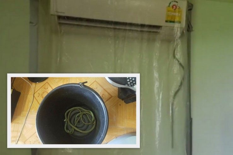 คลิปงูเขียวหลุดออกมาจากเครื่องปรับอากาศ เจ้าของบ้านเตือนภัยในทุกคนเฝ้าระวัง