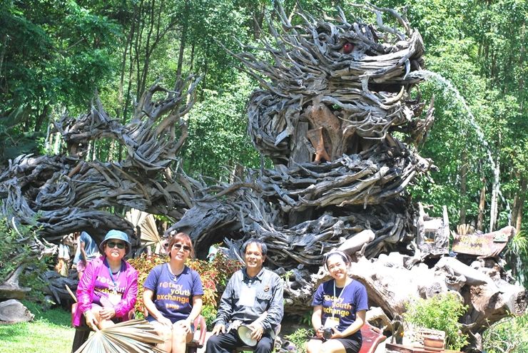 จากนั้น นายจรูญ และชาวบ้านในพื้นที่ จึงได้ไปตระเวนซื้อตอไม้ หรือรากไม้เทพธาโร รวมกว่า 6 แสนกิโลกรัม เพื่อนำมาประดิษฐ์เป็นงานประติมากรรมรูปต่างๆ โดยเฉพาะรูปมังกร เพราะถือเป็นตัวแทนสัตว์ศักดิ์สิทธิ์ และมีความยิ่งใหญ่ตามความเชื่อของชาวจีน
