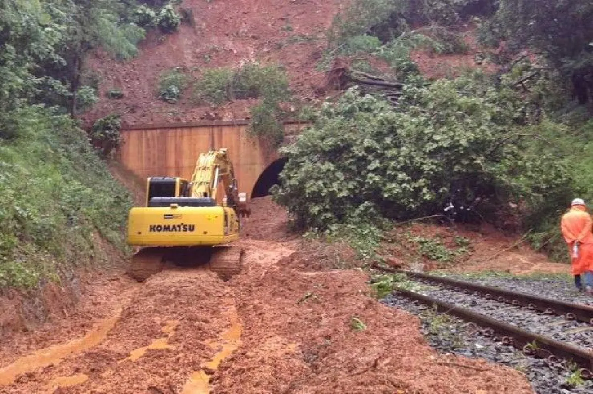 ฝนตกหนัก! อุโมงค์รถไฟที่เทพสถิตเจอดินถล่มปิดทาง