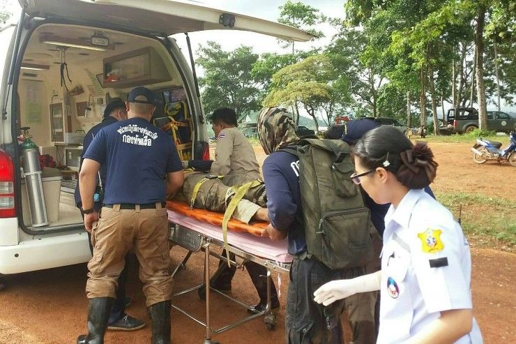 ทหารนาวิกโยธินชุดเก็บกู้ระเบิดพลาดไถลลื่นเหยียบกับระเบิดนอกแนวกั้นได้รับบาดเจ็บ ขณะเข้าเคลียร์พื้นที่เพื่อความปลอดภัยของประชาชน
