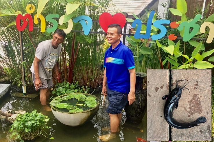 วุ่น!ผู้กำกับไล่จับปลาดุกในบ่อหน้าโรงพักกลัวกัดปลาคราฟตาย