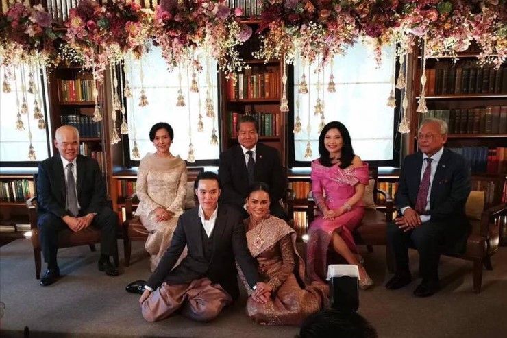 "พิธีมงคลสมรส น้ำทิพย์ เทือกสุบรรณ กับ นิโคลัส โฮ. ( เจ้าบ่าวดีกรีนักศึกษาoxford ชาวฮ่องกง...กำนันคงหนีพวกนักศึกษาoxfords ไปไหนไม่ได้..555)...ขอบคุณภาพจาก ออฟเฟอร์."นายเถกิงระบุ