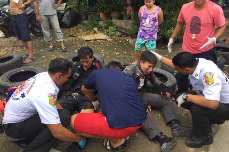 ตร.บางแก้วไล่ล่าคนร้ายเกิดประสบอุบัติเหตุรถล้มเจ็บ2นาย