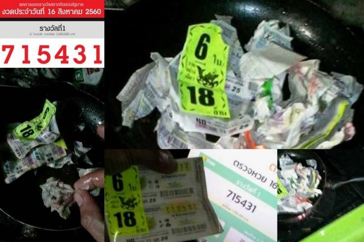 สังคมออนไลน์เผยแพร่เรื่องราวน่าเสียดาย ที่มีผู้ถูกรางวัลข้างเคียงรางวัลที่ 1 แต่กับนำไปฉีกและต้ม โดยไม่รู้ว่าถูกรางวัล