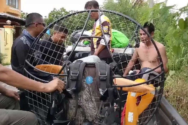 ที่เกิดเหตุบริเวณกลางป่าหญ้าพบเครื่องร่อนร่มบินพารามอเตอร์ตกอยู่ ชาวบ้านที่อยู่ใกล้เคียงที่เกิดเหตุได้เข้าช่วยเหลือนักบินพารามอเตอร์ที่ได้รับบาดเจ็บเล็กน้อย และช่วยกันยกเครื่องพารามอเตอร์ออกมาจากป่าหญ้าได้อย่างปลอดภัย โดยมีรถของทีมชมรมพารามอเตอร์เดินทางเข้ามาร่วมให้การช่วยเหลือ ทราบชื่อนักบินพารามอเตอร์คือ พ.ต.ท.สุนทราพร จาตูม พนักงานสอบสวนอยู่ สภ.เมืองสมุทรปราการ