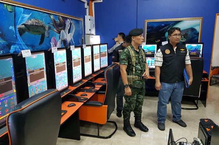 เมื่อวันที่21ส.ค.เวลา23.00น. นายนริศ นิรามัยวงศ์ นายอำเภอบางละมุง จ.ชลบุรี นำกำลังฝ่ายปกครอง ทหารเสือราชินี และตำรวจ สภ.บางละมุง เข้าตรวจค้นอาคารพาณิชย์ เลขที่ 259/64 อยู่กลางซอย 10 โพธิสาร ม.5 ต.นาเกลือ อ.บางละมุง จ.ชลบุรี หลังได้รับการร้องเรียนว่ามีการลักลอบเปิดเป็นบ่อนพนันออนไลน์และโต๊ะบอลเถื่อน โดยที่ด้านหน้าอาคารติดป้ายเป็นร้านเกมส์อินเทอร์เน็ตชื่อ“ซีสตอรี่” เมื่อตรวจสอบด้านในพบคอมพิวเตอร์ตั้งโต๊ะจำนวนมาก หน้าจอถูกเปิดโปรแกรมพนันออนไลน์ประเภทสล็อตยิงปลาและอื่นๆค้างไว้รอลูกค้า ภายในห้องแลกเงินพบว่าเปิดเป็นโต๊ะรับแทงพนันฟุตบอลลีกต่างประเทศ มีนายธนพนต์ นามส่วย อายุ 30 ปี และ น.ส.ขันคำ จันดี อายุ 27 ปี แสดงตัวเป็นผู้ดูแล เจ้าหน้าที่จึงได้แจ้งข้อกล่าวหา "จัดให้มีการเล่นการพนัน เพื่อเอาทรัพย์สิน โดยไม่ได้รับอนุญาต"ก่อนควบคุมตัวสองผู้ดูแลบ่อนพร้อมของกลางส่งพนักงานสอบสวน สภ.บางละมุง ดำเนินคดีตามกฎหมาย