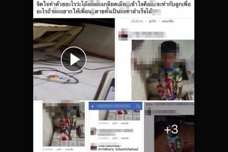 “ที่พ่อมันอ้างว่า ตบลูก เพราะลูกถามถึงแม่ พอโดนกะแสตี บอกว่าลูกตกบันได ต้องการประชดเมียแค่นั้น !!! แล้ว...ก็ปิดเฟซหนี เอาไงดี” เพจดังกล่าว ระบุ