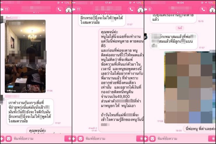 ทั้งนี้ภาพของโพสต์ข้อความดังกล่าว เป็นบทสนทนาในกลุ่มไลน์ของทีมงานภาพยนต์เรื่องหลวงพี่แจส 5 จี โดยบทสนทนาเริ่มจาก ผู้กับกับดังทักไปต่อว่า หญิงคนดังกล่าว โดยเธอก็ชี้แจงถึงสาเหตุที่อาจจะไปทำงานไม่ได้ เพราะคุณพ่อเสีย และก่อนหน้านั้นก็ได้ติดต่อสถานที่ไว้แล้ว แต่ไม่คิดว่าผู้กับกับจะต้องว่ารุนแรงถึงขนาดนี้ ก่อนที่จะส่งภาพคุณพ่อของเธอ (ขณะเสียชีวิต) ส่งกลับมา แต่ถึงอย่างไรผู้กำกับดังก็ไม่หยุดที่จะตำหนิหญิงคนดังกล่าว