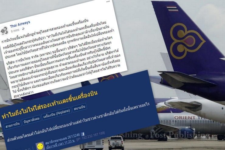 การบินไทยแจงไม่มีกฎห้ามผู้โดยสารใส่รองเท้าแตะขึ้นเครื่อง แต่จะมีระเบียบการแต่งกายเฉพาะผู้ใช้สิทธิ์บัตรโดยสารพนักงาน