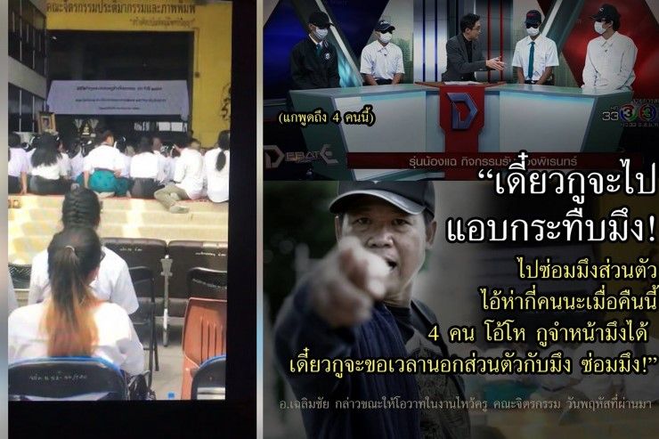 ก่อนที่ตอนจบปิดท้ายด้วยการขู่กระทืบ “แล้วกูก็ไม่รู้ด้วยว่ามึงทำให้คณะกูเสียหาย กูพึ่งดูเมื่อคืน ...เดี๋ยวกูจะไปแอบกระทืบมึง ไปซ่อมมึงส่วนตัว ไอ้ห่ากี่คนนะเมื่อคืนนี้ 4 คน โอ้โห กูจำหน้ามึงได้ เดี๋ยวก็จะขอเวลานอกส่วนตัวกับมึง ซ่อมมึง ขอให้ความสุขความเจริญจงเกิดขึ้นแก่ลูกทุกคน โชคดีมีสุขๆ”