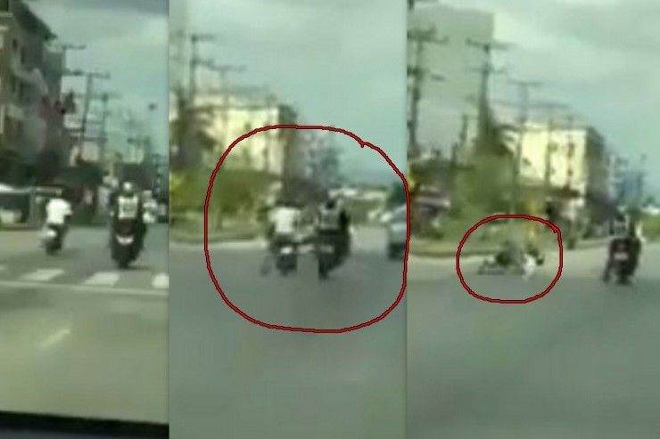 วิจารณ์! ตร.ถีบมอไซค์ชายที่กำลังขับหนีจนล้ม