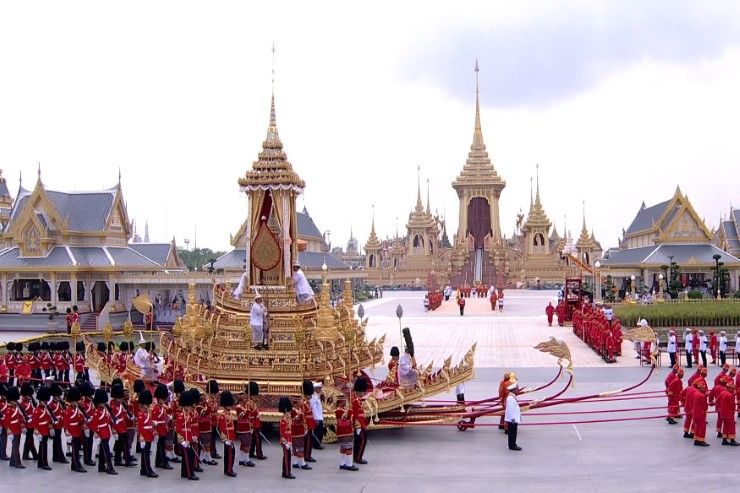 เมื่อวันที่ 26 ต.ค. 2560 สมเด็จพระเจ้าอยู่หัว เสด็จพระราชดําเนิน ไปยังพลับพลายกหน้าวัดพระเชตุพนวิมลมังคลาราม ทรงทอดผ้าไตร 20 ไตรที่ท้ายเกรินบันไดนาคพระมหาพิชัยราชรถ พระสงฆ์สดับปกรณ์เที่ยวละ 5 รูป อัญเชิญพระบรมโกศ ขึ้นประดิษฐานในบุษบกพระมหาพิชัยราชรถ ยาตราขบวนแห่อัญเชิญพระบรมโกศ ไปยังพระเมรุมาศท้องสนามหลวง สมเด็จพระเจ้าอยู่หัวเสด็จฯ และ พระบรมวงศานุวงศ์ตาม