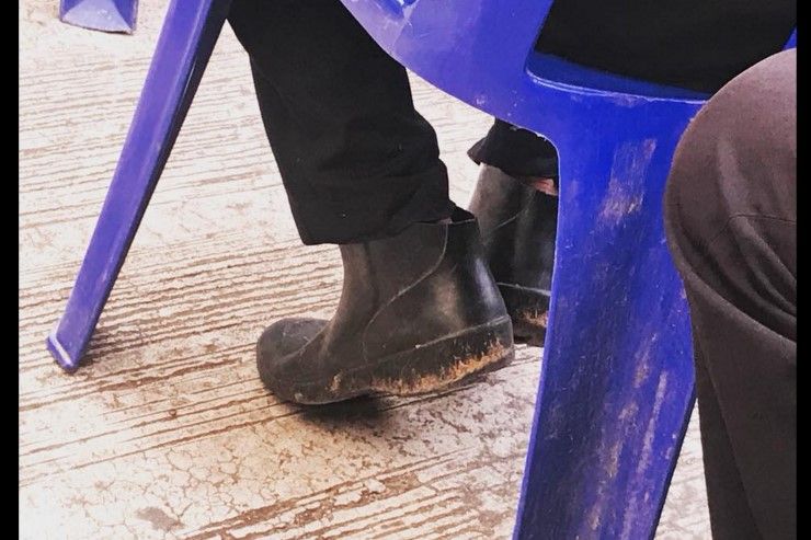 คุณลุงท่านนี้นำรองเท้าบูทสีดำที่สวมไปท้องนา มาตัดด้านบนออกจนเหลือเป็นรองเท้าหุ้มส้นทดเเทนรองเท้าคัทชู ที่น่าประทับใจกว่านั้นคือคุณลุงยอมเจ็บ จากการถูกขอบรองเท้าบาดจนเลือดซึมออกมาด้วย