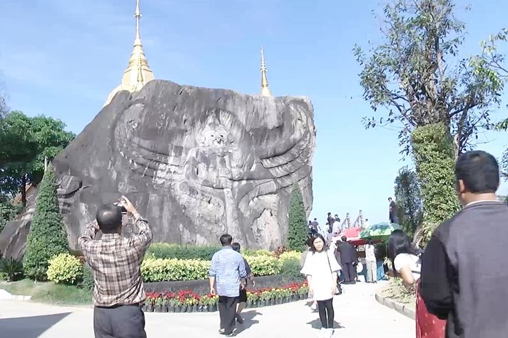 เทือกเขาภูพานอากาศเย็นคนแห่เที่ยววัดถ้ำผาเด่น
