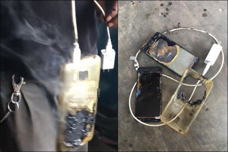 “ขอโพสต์ไว้เป็นอุทาหรณ์นะคะ โทรศัพท์พ่อเราเองขณะเกิดเหตุคือกำลังชาร์จโทรศัพท์ทิ้งไว้ในบ้าน เเต่อยู่ๆ ก็ได้กลิ่นไหม้และควันคลุ้งเลยรีบวิ่งไปดู ก็เจอโทรศัพท์ที่กำลังลุกเป็นประกายไฟ คิดดูว่าถ้าชาร์จทิ้งไว้เเล้วเราไม่อยู่บ้านและถ้าชาร์จด้วยเล่นไปด้วยจะเกิดอะไรขึ้น (คงระเบิดใส่มือหรือได้หน้าแหกแน่ๆ) แต่โชคดีที่ไม่มีอะไรเสียหายมากกว่านี้ โทรศัพท์ซื้อได้ยังไม่ถึงปี พ่อใช้แค่โทรออกเเละรับสาย เล่นไลน์ด้วยนิดหน่อย ที่สำคัญซื้อที่ศูนย์โดยตรง คือมันน่ากลัวมาก” เจ้าของโพสต์ ระบุ