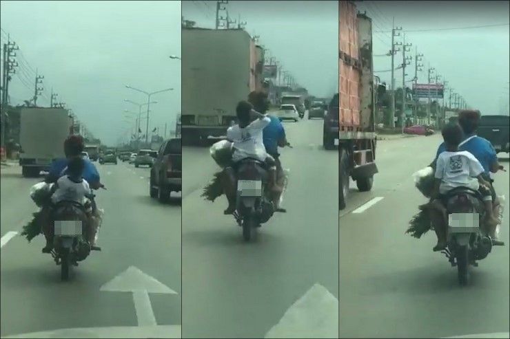 เมื่อวันที่ 20 พ.ย. ผู้ใช้เฟซบุ๊กชื่อ “สันติสุข มหาวงษ์” เผยแพร่ภาพเหตุการณ์น่าหวาดเสียวที่อาจเป็นอุทาหรณ์ให้กับผู้ปกครองที่ชอบให้เด็กเล็กนั่งซ้อนท้ายรถจักรยานยนต์ เป็นภาพเหตุการณ์ขณะที่รถจักรยานยนต์คันหนึ่งซึ่งมีเด็กเล็กนั่งซ้อน กำลังขับขี่บนถนนเลนกลางด้วยความเร็ว โดยทั้งคนขับซึ่งอาจเป็นแม่และเด็กไม่สวมใส่หมวกกันน็อคหรือเครื่องป้องกัน และเด็กยังมีท่าทีไม่อยู่เฉย จนสร้างความน่าหวาดเสียวให้คนที่ขับรถตามหลัง