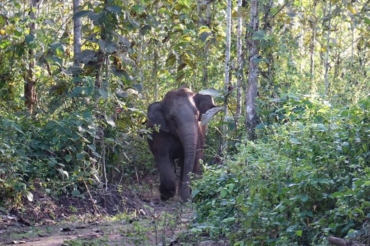 กาญจนบุรี-หัวหน้าสวนป่าทองผาภูมิเตือนขับรถใช้ถนนหลวงหมายเลข3272ระวังช้างป่าอายุราว8ปีขี้หงุดหงิดและช่างสงสัยเดินข้ามถนน