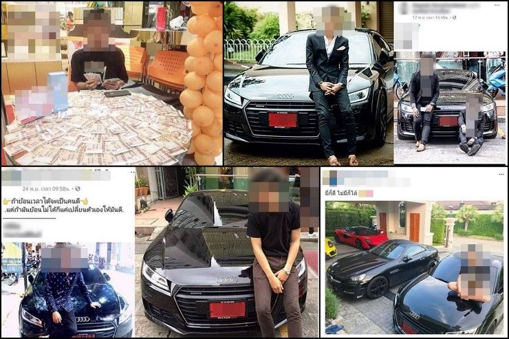ชายหนุ่มสะพายกระเป๋าแบรนด์เนม ยืนเคียงข้างซุปเปอร์คาร์สีแดงคันหรูมูลค่ากว่า 10 ล้านบาท เขาเอ่ยปากบอกให้เพื่อนถ่ายภาพให้เพื่อเอาไปขึ้นเฟซบุ๊ก โดยใส่แคปชั่นประกอบว่า "เราทุกคนเกิดมาเพื่อเป็นผู้ชนะ" "ผมทำได้ คุณก็ได้ทำ มารวยไปด้วย" "อย่ามัวเเต่รอให้ทุกสิ่งเปลี่ยนแปลง เริ่มวันนี้เพื่ออนาคต" "คุณไม่สมัครคุณก็กลับไปเป็นลูกจ้างต่อไป"