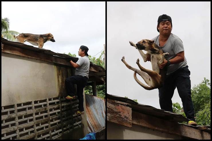 โดยที่บ้านปากจ่า หมู่5 ต.ควนโส อ.ควนเนียง จ.สงขลา มีสุนัขหลายตัวต้องได้รับผลกระทบจากน้ำท่วม โดยหนึ่งในนั้นได้ไปติดอยู่บนหลังคาบ้านประมาณ 5 วัน ก่อนที่จะมีชายคนหนึ่งปีนขึ้นไปช่วยลงมาอย่างปลอดภัย
