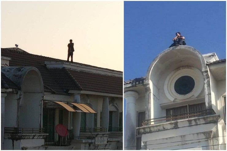 เกิดเหตุชายมีอาการคลุ้มคลั่งขึ้นไปบนหลังคาบ้านสูง 3 ชั้นย่านรามอินทรา ก่อนตัดสินใจโดดลงมาบาดเจ็บสาหัส ขณะเจ้าหน้าที่เข้าเกลี้ยกล่อม
