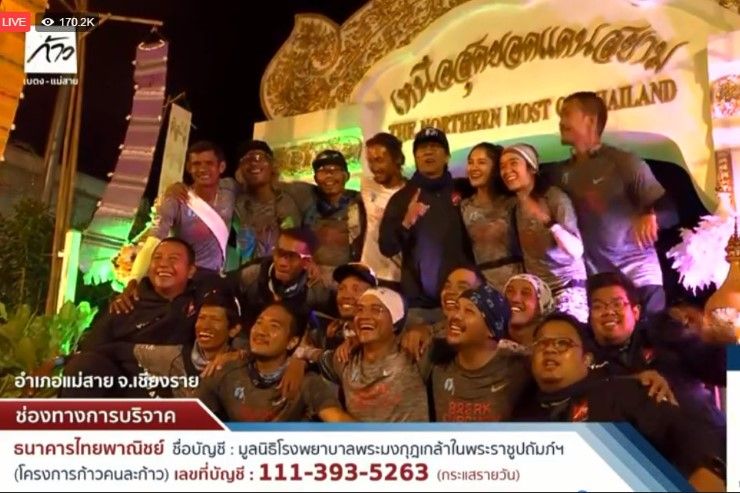 "ตูน บอดี้สแลม" พร้อมคณะนักวิ่งก้าวคนละก้าว วิ่งถึงด่านท่าขี้เหล็ก เหนือสุดแดนสยามที่ อ.แม่สาย เชียงรายแล้ว ยอดบริจาคพุ่งกว่า 1,147 ล้านบาท