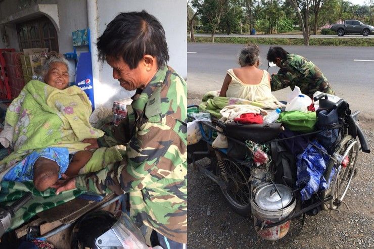 โชคร้ายแฟนแกพิการเป็นเบาหวานตัดขา 1 ข้าง ลุงแกบอกก็ต้องดูแลกันต่อไป รักแท้มีอยู่จริง แกบอกว่าเงินไม่มีเลยหมดแล้ว เดี๋ยวไปข้างหน้าค่อยไปขอคนมีน้ำใจช่วยเรื่อยไป นี่แหละชีวิตคนต้องสู้กันต่อไป ขอเป็นกำลังใจให้ลุงไปให้ถึงจุดหมายนะลุง" หญิงสาวระบุ