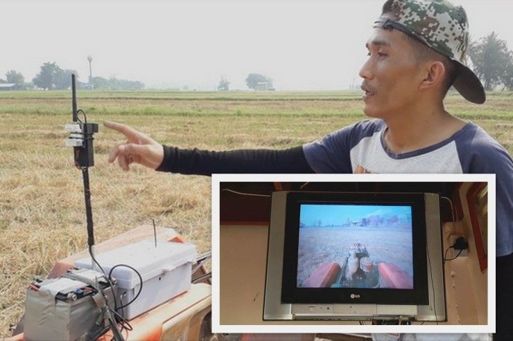 ชาวนา4.0ต้องแบบนี้! หนุ่มประดิษฐ์รถไถติดกล้องบังคับผ่านหน้าจอ