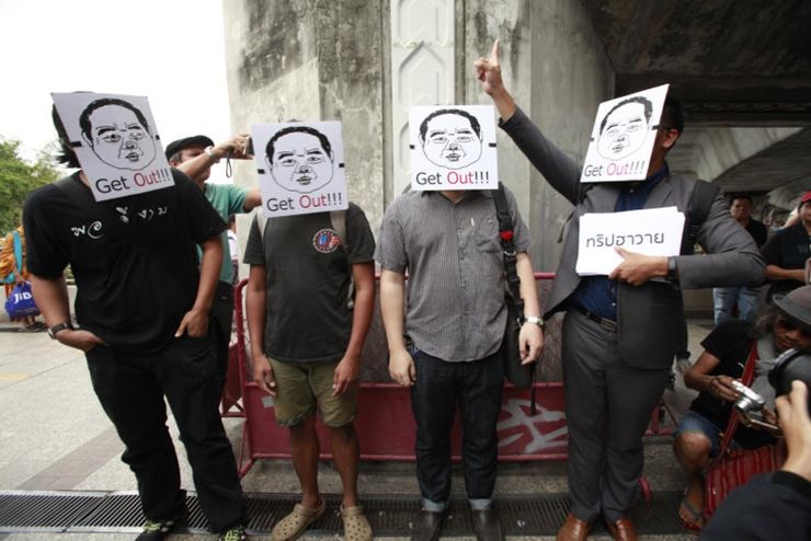 กลุ่มต้านโกงสวมหน้ากากล้อเลียนถือป้ายไล่"บิ๊กป้อม"