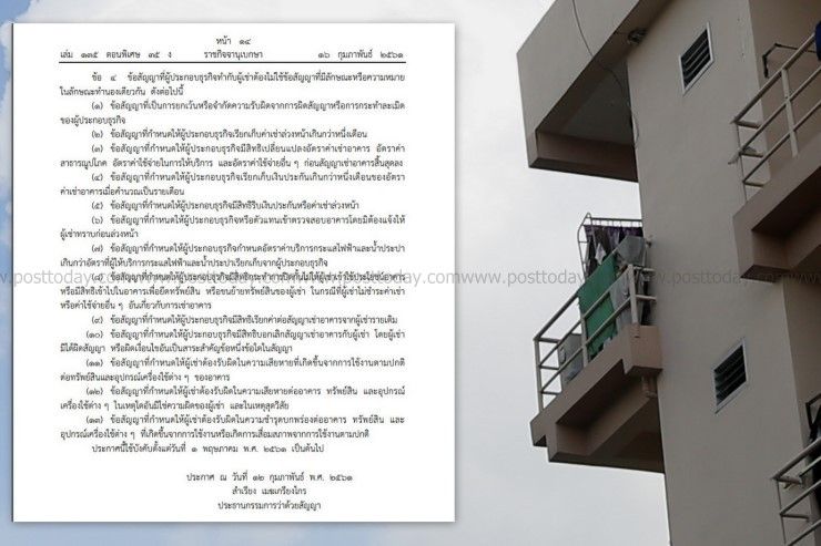 เปิดรายละเอียดประกาศให้ธุรกิจการให้เช่าอาคารเพื่ออยู่อาศัยเป็นธุรกิจที่ควบคุมสัญญา ป้องกันผู้เช่าถูกขูดรีด มีผลบังคับใช้ 1 พ.ค.นี้