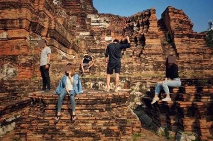 นักท่องเที่ยวถ่ายรูปปีนโบราณสถานมอบตัวตร. อ้างรู้เท่าไม่ถึงการณ์