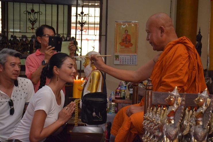พระนครศรีอยุธยา-"ลูกหมี รัศมี"นำทีมนางแบบ กราบไหว้พระ ลงนะหน้าทองกับ“อาจารย์แดง ”เกจิชื่อดัง วัดป้อมรามัญ เพื่อความสิริมงคลเนื่องในวันมาฆบูชา